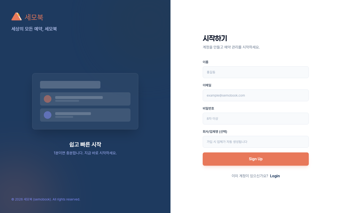 세모북 관리자에 처음 가입한 뒤 5분 안에 기본 세팅 을 마치는 가이드입니다.